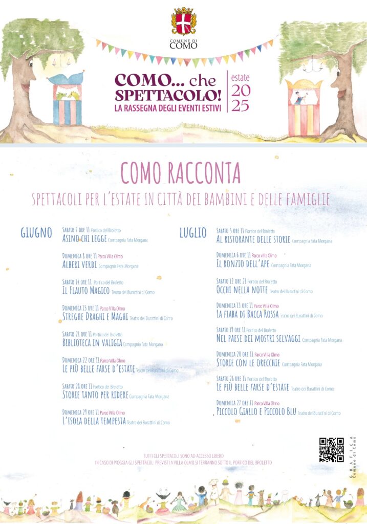 Il programma si svolgerà nei giorni di sabato e domenica. Da sabato 7 giugno a domenica 27 luglio 2025, sempre alle ore 11.00. Rispettivamente sotto il Portico del Broletto nei giorni di sabato e nel Parco di Villa Olmo nei giorni di domenica. (per quest’ultimo luogo è opportuno portare con sé un telo da stendere sul prato)